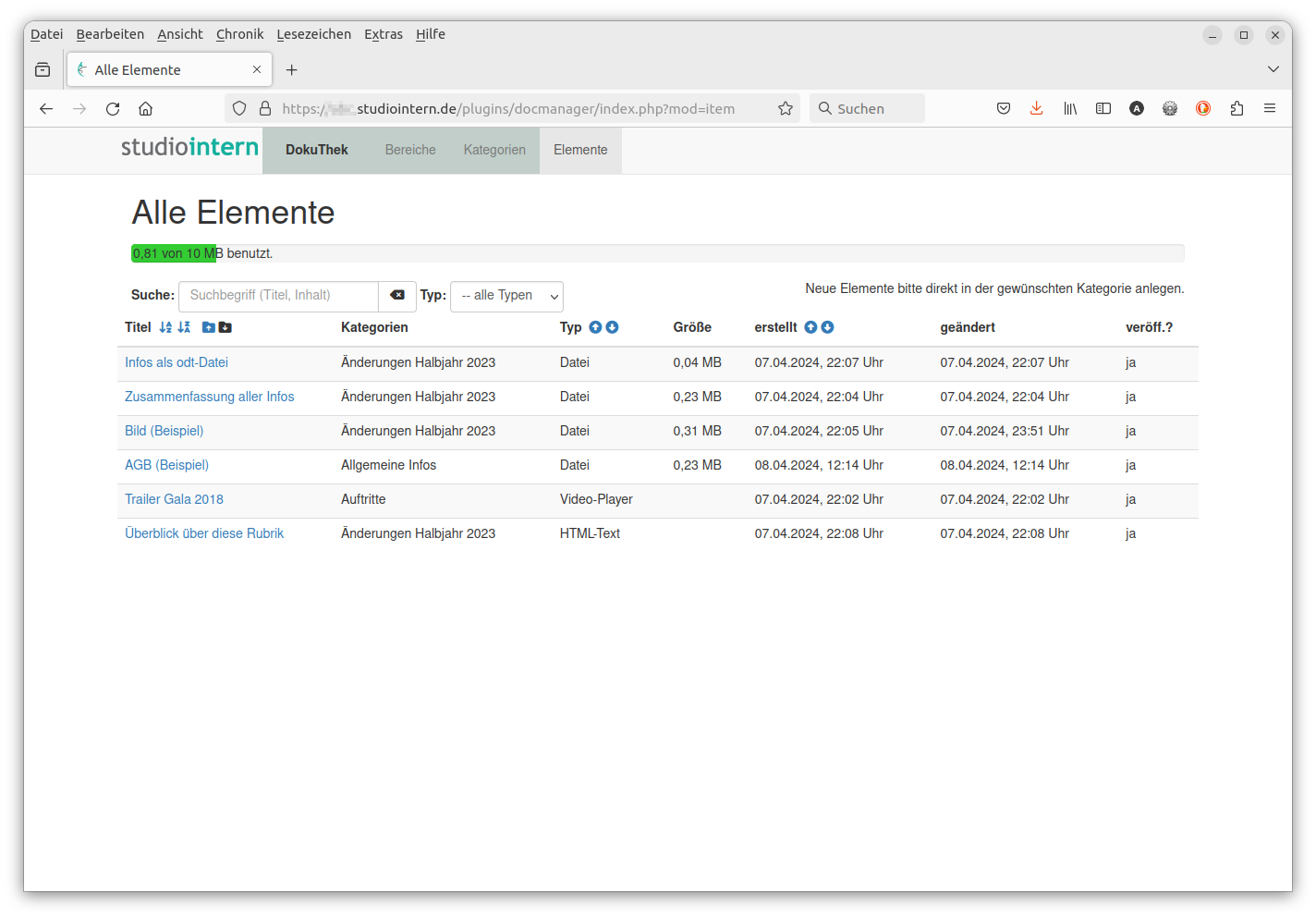 Die DokuThek wird in der StudioIntern-App und im Kundenportal als eigener Menüpunkt angezeigt.